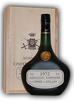 Armagnac Croix de Salles, aus dem alten und noch existenten Herstellerhaus Dartigalongue. Das Anwesen befindet sich in der Region Gers im Herzen der Gascogne. Das Unternehmen wurde 1838 von Pascal Dartigalongue gegründet. Im Jahr 1870 erwarb er den Weinberg "Lacroutz", von dem auch der Armagnac "Croix de Salles" stammt. Das unternehmerische Motto lautet noch heute: "Mein Armagnac - meine Stärke". Armagnac-Raritäten und viele weitere tolle Geschenke und Präsente aus dem Jahr finden Sie bei Geschenkshop-Deluxe, der Spezialshop für Erlesenes und Außergewöhnliches. Personalisierte Produkte, Jahrgangs-DVD und Holzkisten mit Jahrgangs-Musik mit persönlicher Banderole.